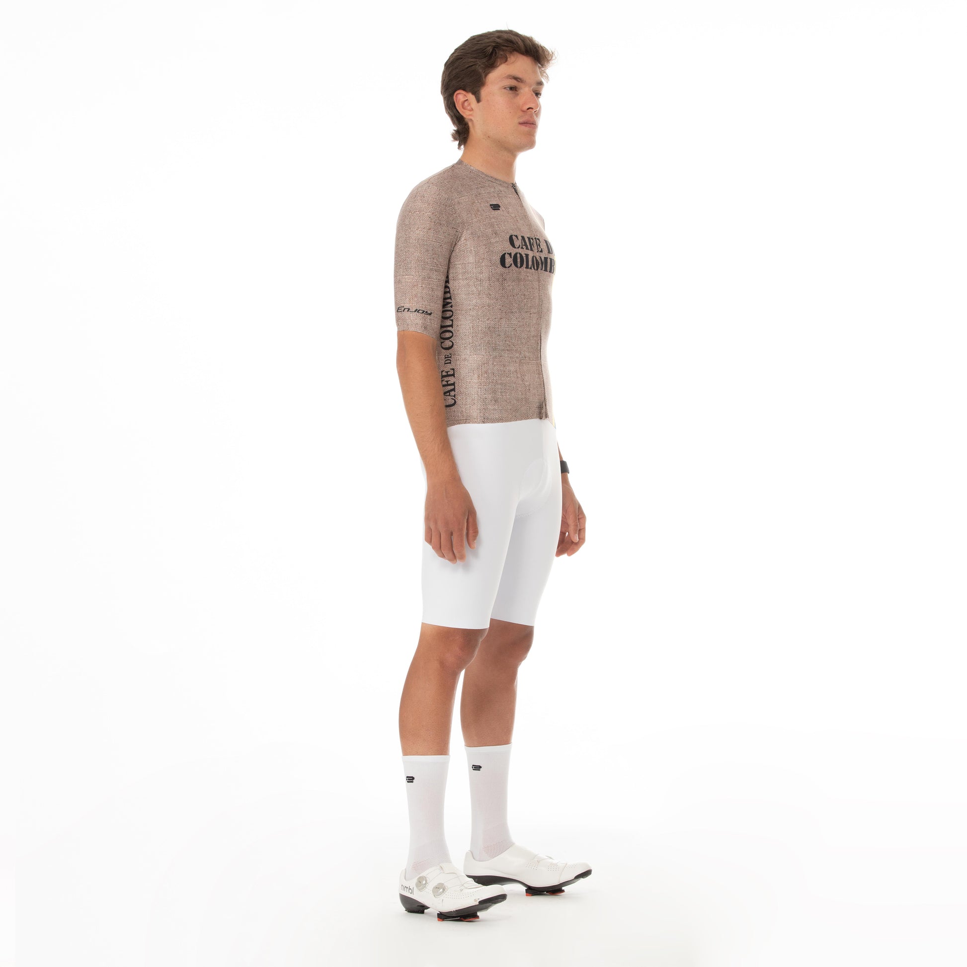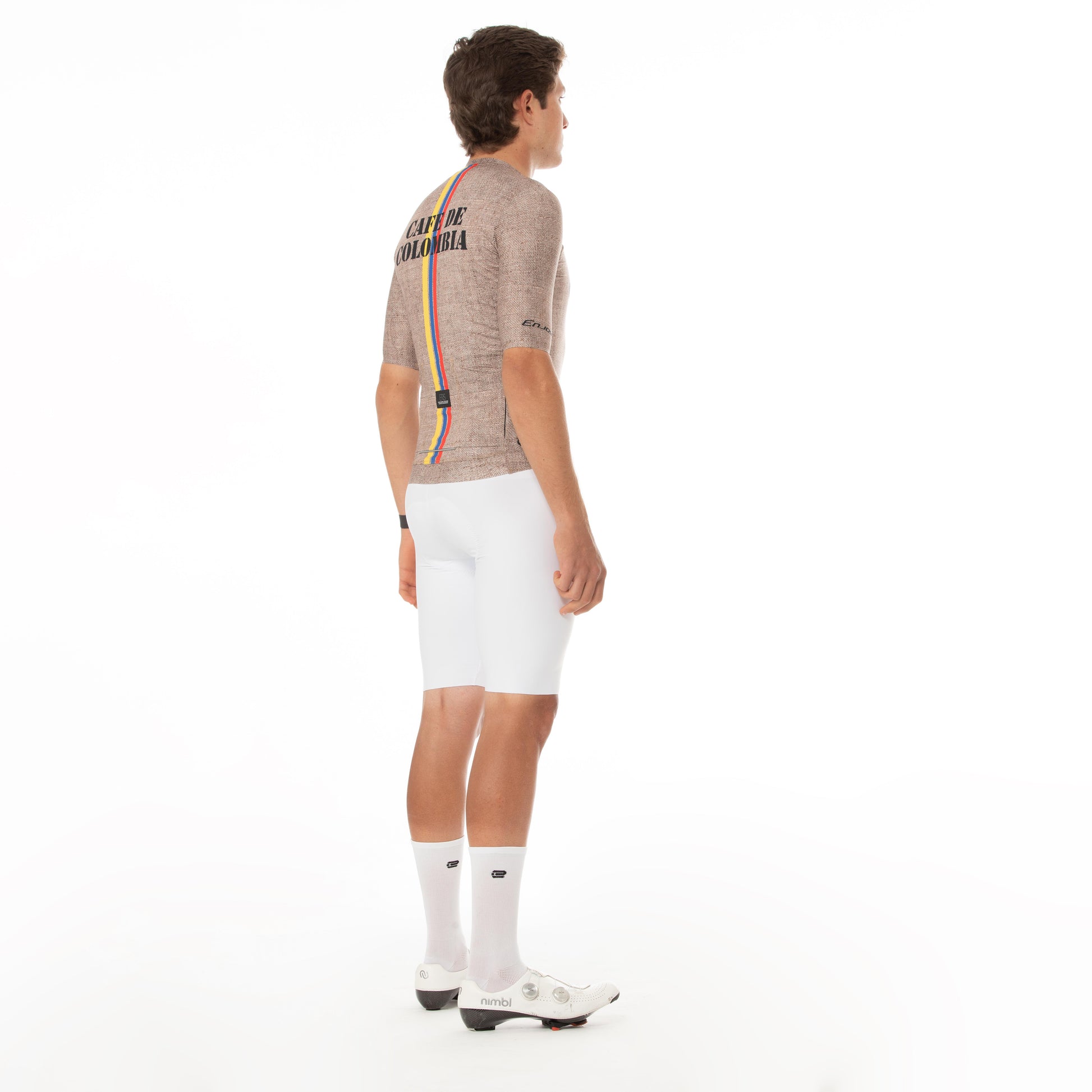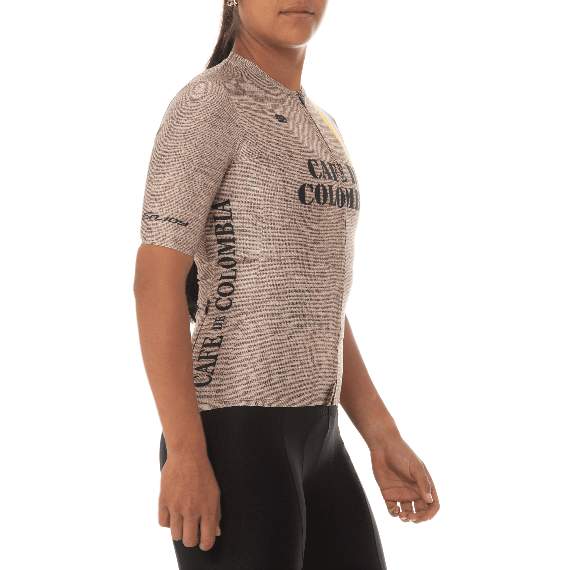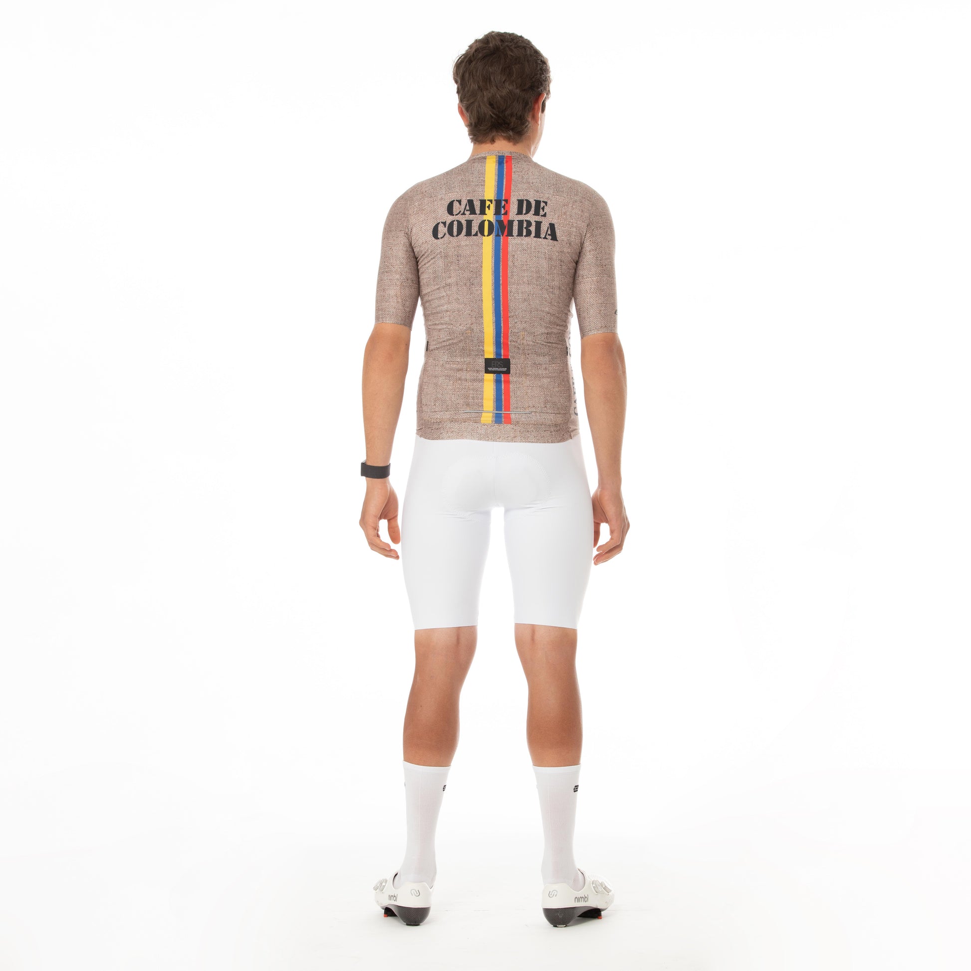 Jersey edición exclusiva, inspirado en la cultura cafetera colombiana con acabado tipo costal y franjas tricolor . Confeccionado en poliéster/lycra de alta gama, integra tecnologías SWIFTDRY de secado rápido y PROSUN SPF 30+ para protección solar, además de paneles de malla para máxima ventilación. Diseñado con tela nano perforada de alto rendimiento, corte limpio termosellado, cremallera YKK de seguridad y fajón italiano para ajuste perfecto. Incluye bolsillo semipermeable con cremallera, detalles reflectivos y tejido ultraligero de tacto suave