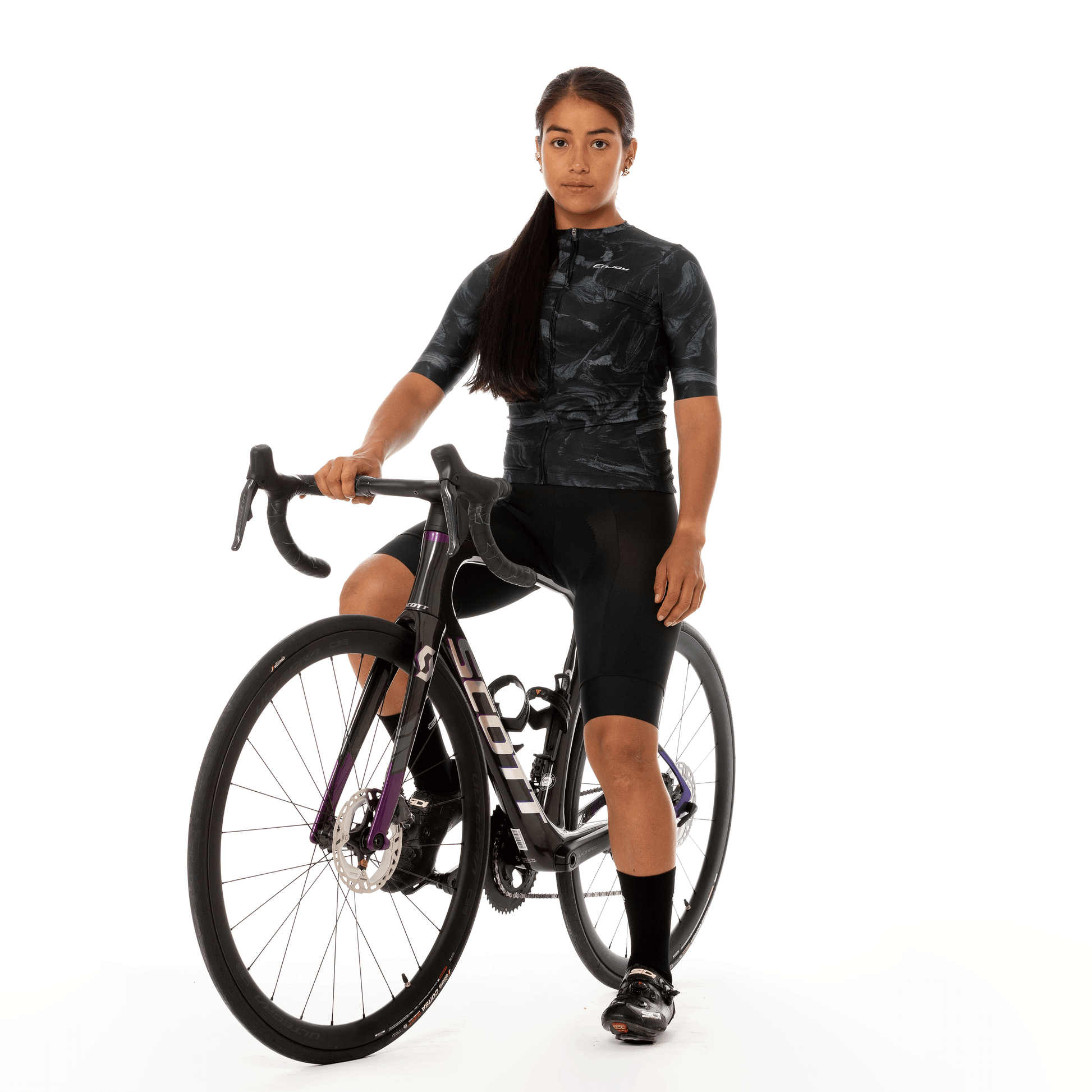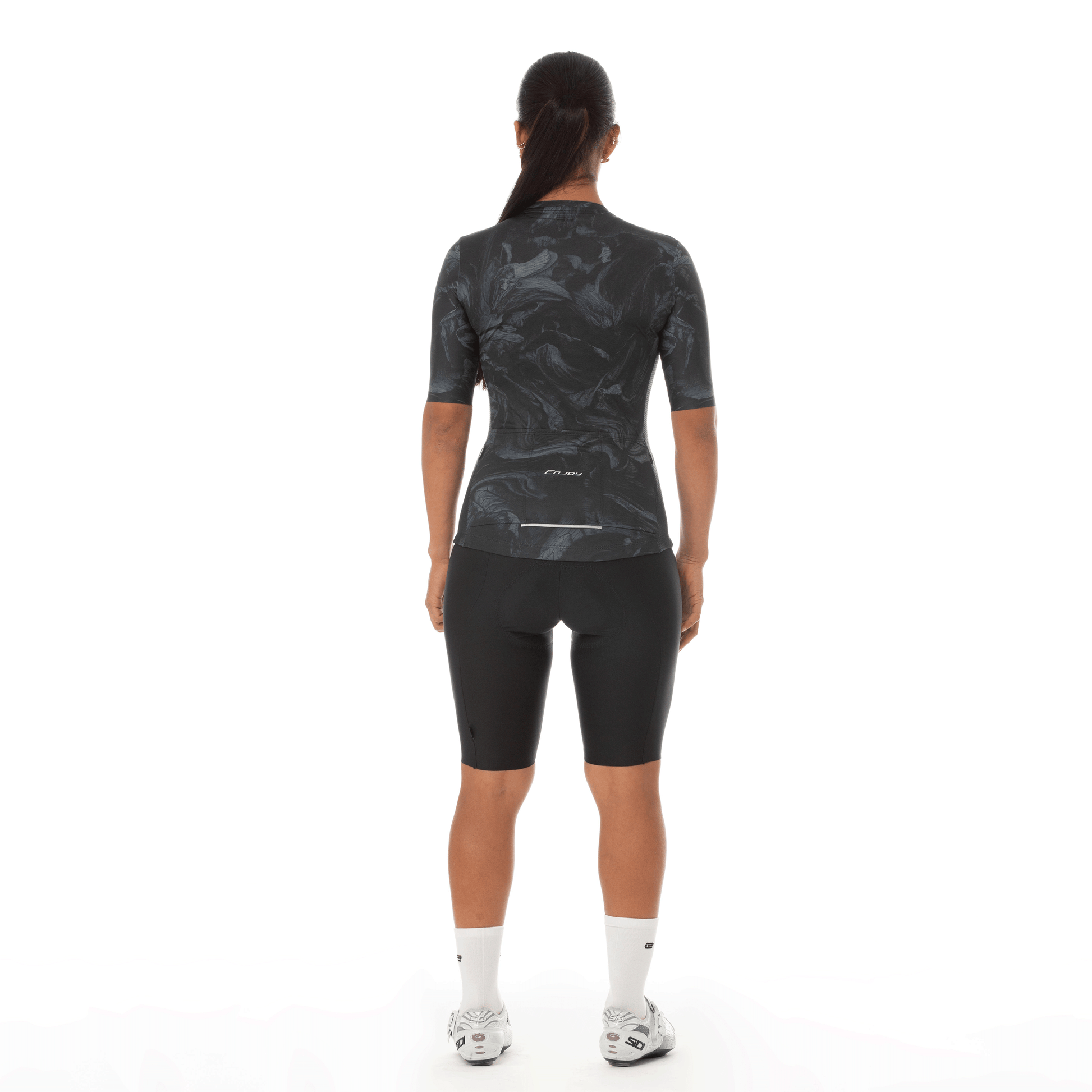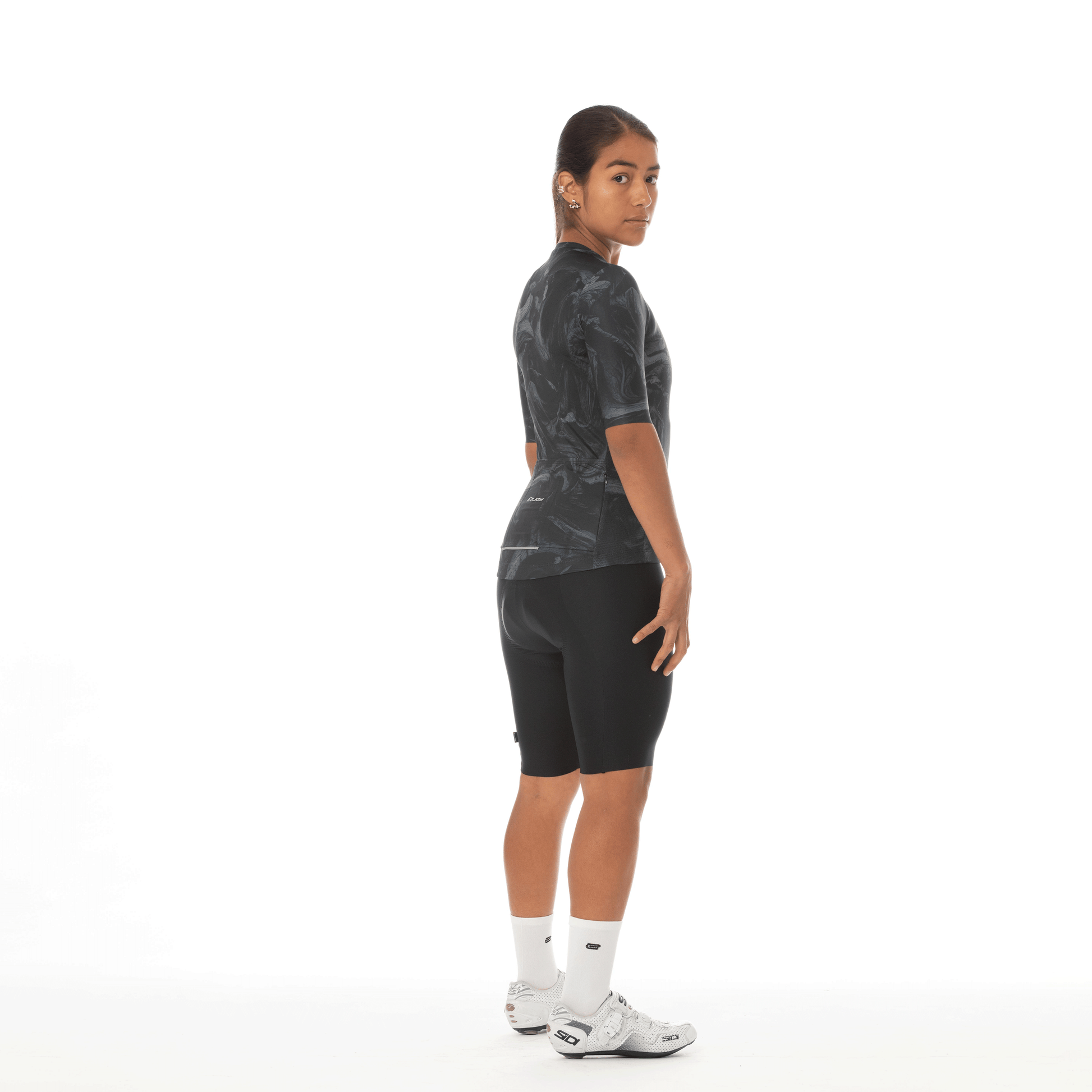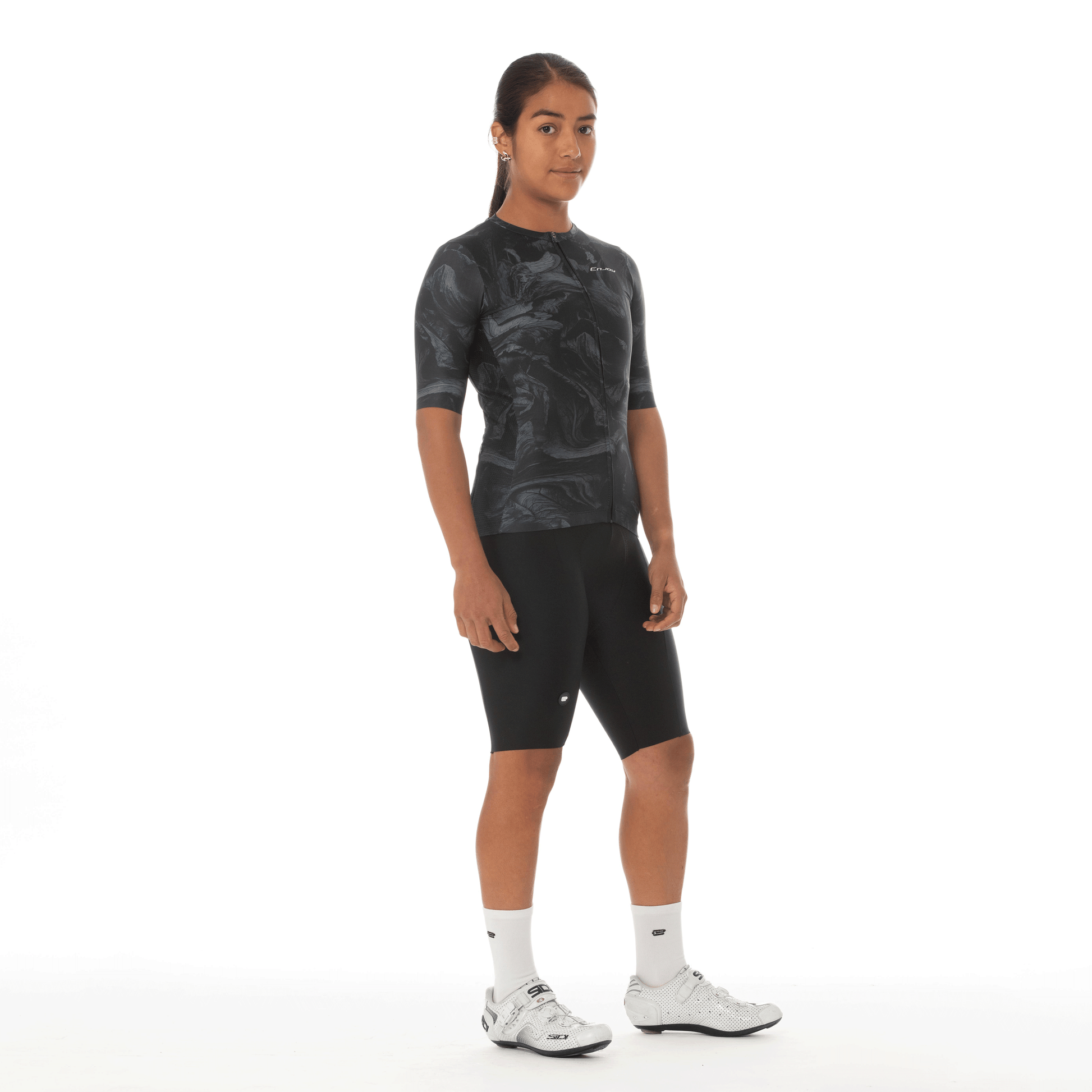 Camiseta Elite Super Slim Le Classique NOIR, con escote redondo y cuello corto. Confeccionada en microfibra elástica al frente y mangas, espalda en tela nano perforada y paneles laterales en malla para mayor ventilación. Disponible en manga corta con acabado láser anatómico o manga larga con doble puño de lycra. Incluye cremallera YKK de seguridad, elástico siliconado Enjoy, tres bolsillos traseros y uno semipermeable con cremallera. Con detalles reflectivos y tecnologías Colortech, Prosun, Aquatech y Swiftdry, además de tintas italianas con protección UV.