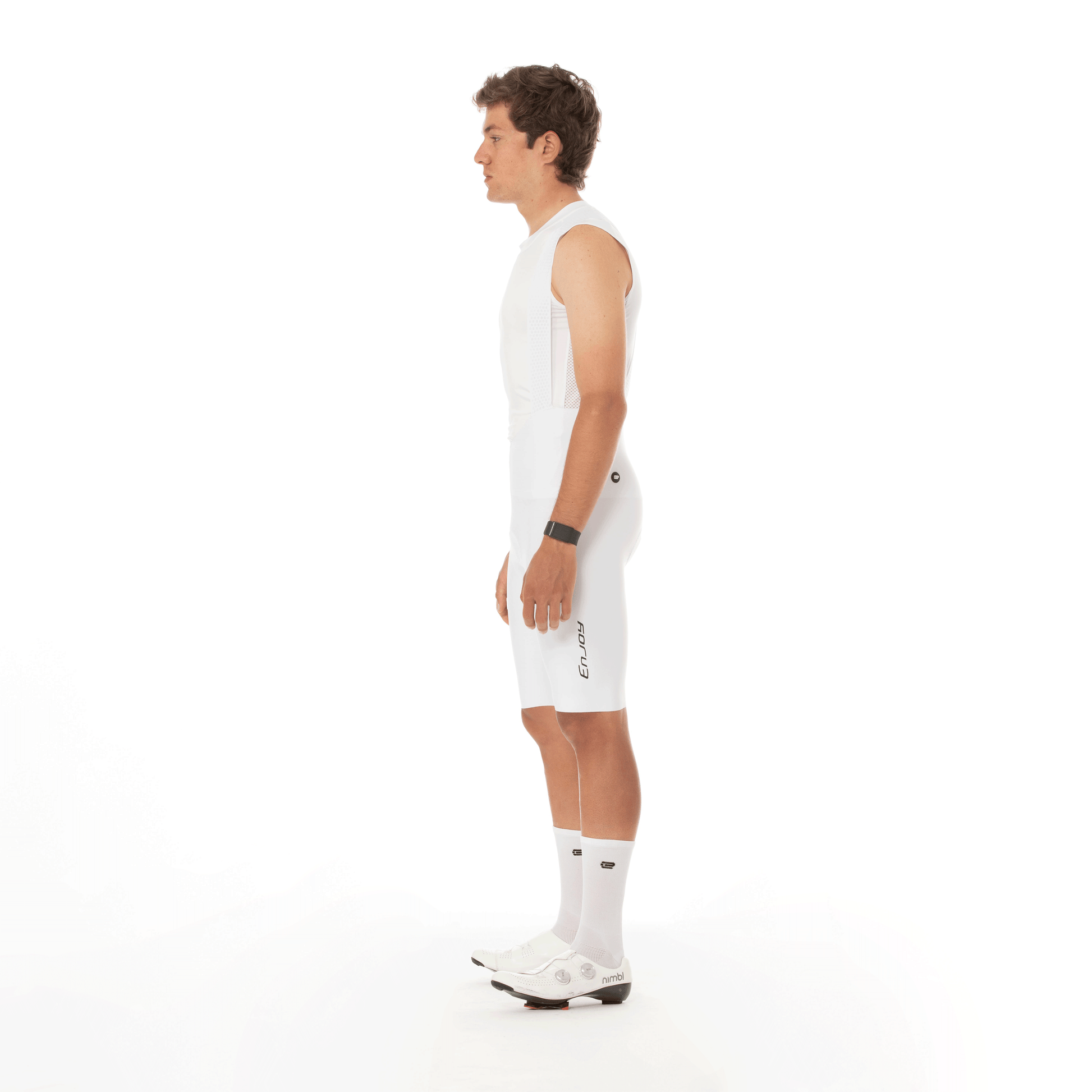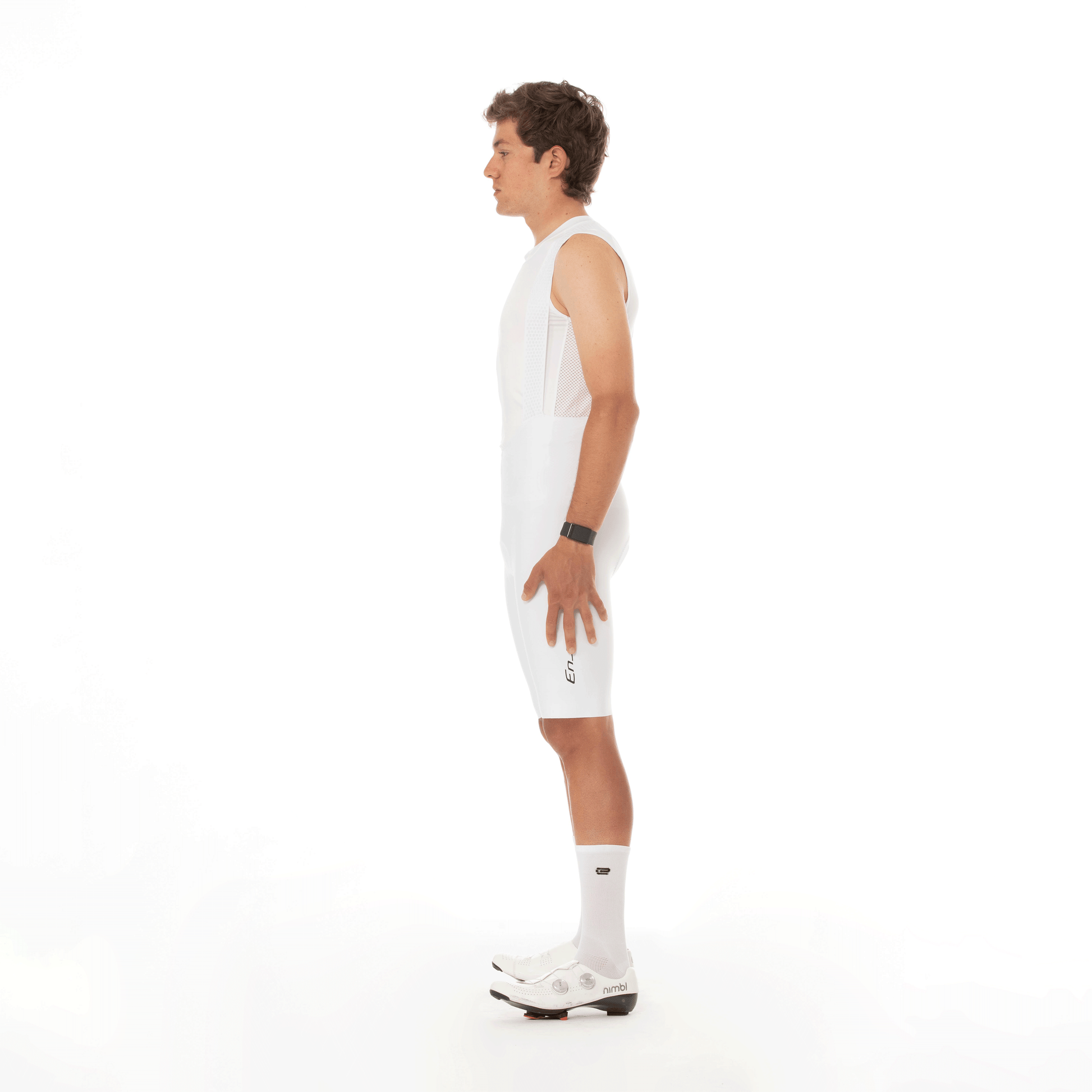 Pantaloneta VENGE 2.0 WHITE la clásica sin costuras re-ingeniada para máxima comodidad. Confeccionada en tejido liso mate certificado OEKO-TEX, en nylon/elastano para un ajuste perfecto y mayor compresión. Incorpora acabado antideslizante, nuevas cargaderas italianas en malla para mejor transpiración y badana italiana PROTOS 1.0 de alta densidad con propiedades antibacterianas, ideal para salidas de hasta 6 horas.